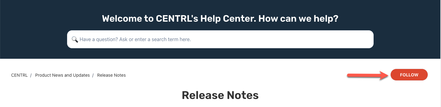 To do so, navigate to our Release Notes page by clicking here and click on the Follow button as shown below. By doing so, you will automatically be notified of our future releases via email notification.